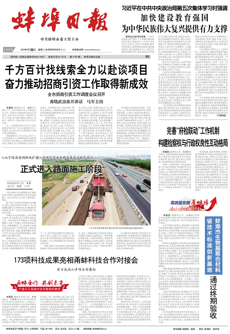 【名媒聚焦】蚌埠日報:G36寧洛高速明蚌改擴建01標(biāo)項目順利完成水穩(wěn)底基層試驗段施工——正式進(jìn)入路面施工新階段