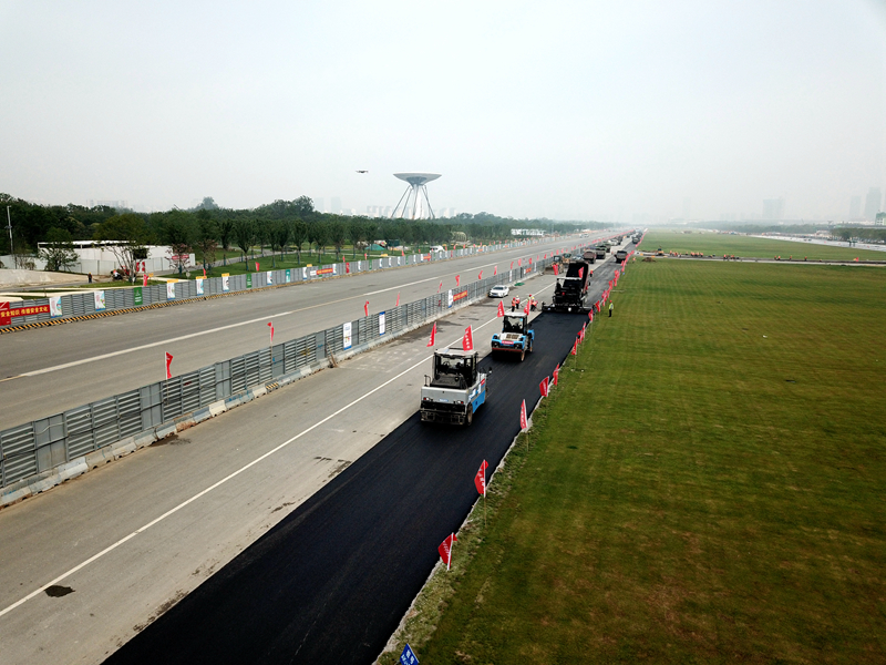 6月23日,記者從安徽新途建材有限責任公司(以下簡稱安徽新途公司)獲悉,在駱崗中央公園片區(qū),由安徽省路橋公司承建的園博園機場跑道修復及相關(guān)配套項目2標成功應用無人攤壓機群,這是時隔十日安徽新途公司在青海路項目引入無人攤壓技術(shù)后的又一次實踐。