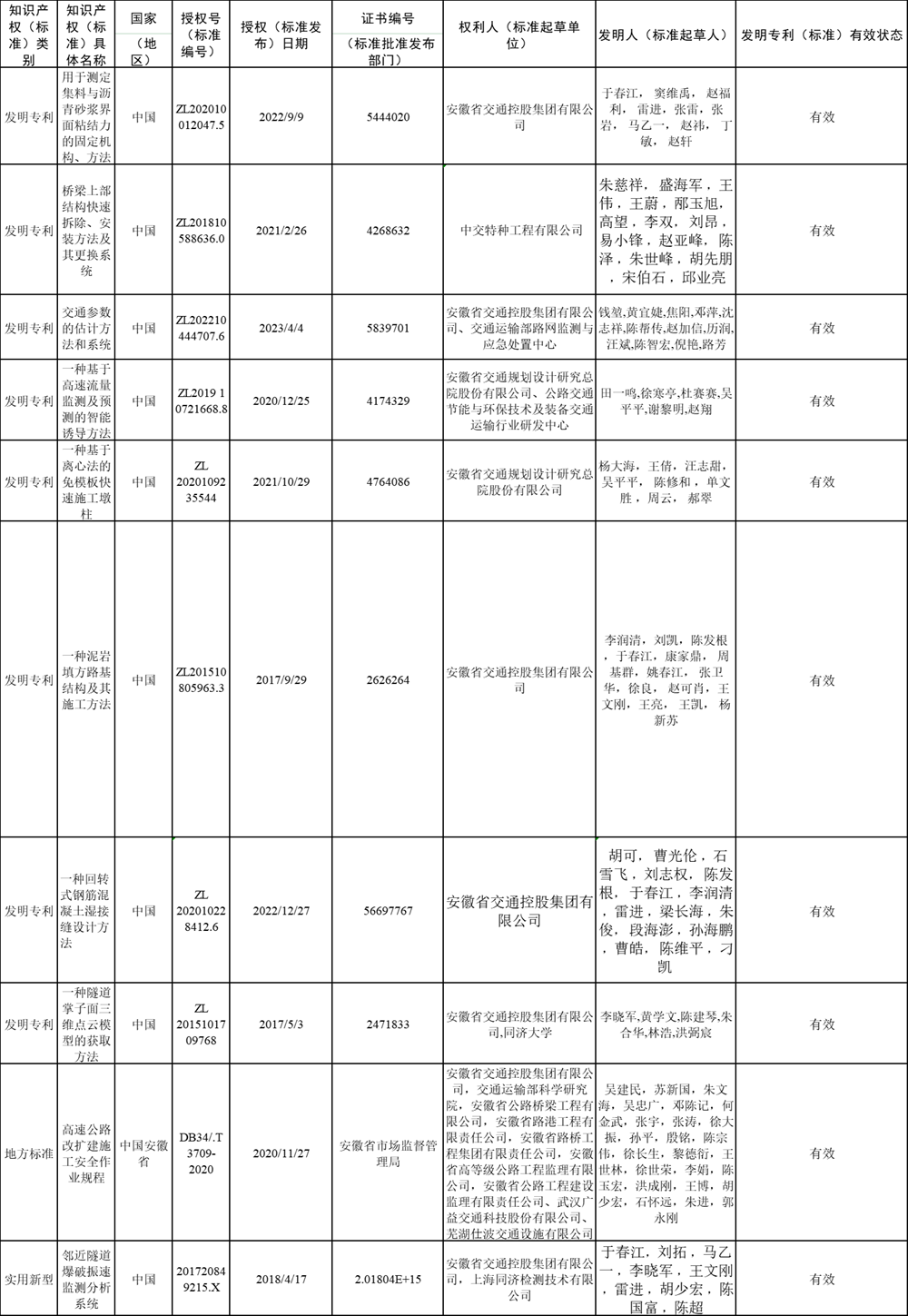安徽省交通控股集團(tuán)有限公司、安徽省交通規(guī)劃設(shè)計(jì)研究總院股份有限公司、安徽交控工程集團(tuán)有限公司、安徽省公路橋梁工程有限公司、交通運(yùn)輸部科學(xué)研究院、安徽巢湖路橋建設(shè)集團(tuán)有限公司、中交特種工程有限公司