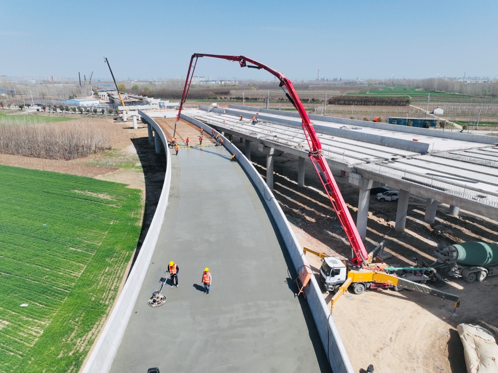 “施工過程中,我們嚴把原材料質(zhì)量、橋面清理、鋼筋網(wǎng)片鋪設、混凝土澆筑等各道工序,攤鋪后對混凝土表面進行二次收面,及時覆蓋土工布并進行灑水養(yǎng)生,使橋面達到內(nèi)實外美效果。”周邵鵬說,全線橋面鋪裝總計88聯(lián),橋面鋪裝首件工程的順利澆筑,為后續(xù)橋面施工提供了技術支撐,截至3月底已累計完成10跨。