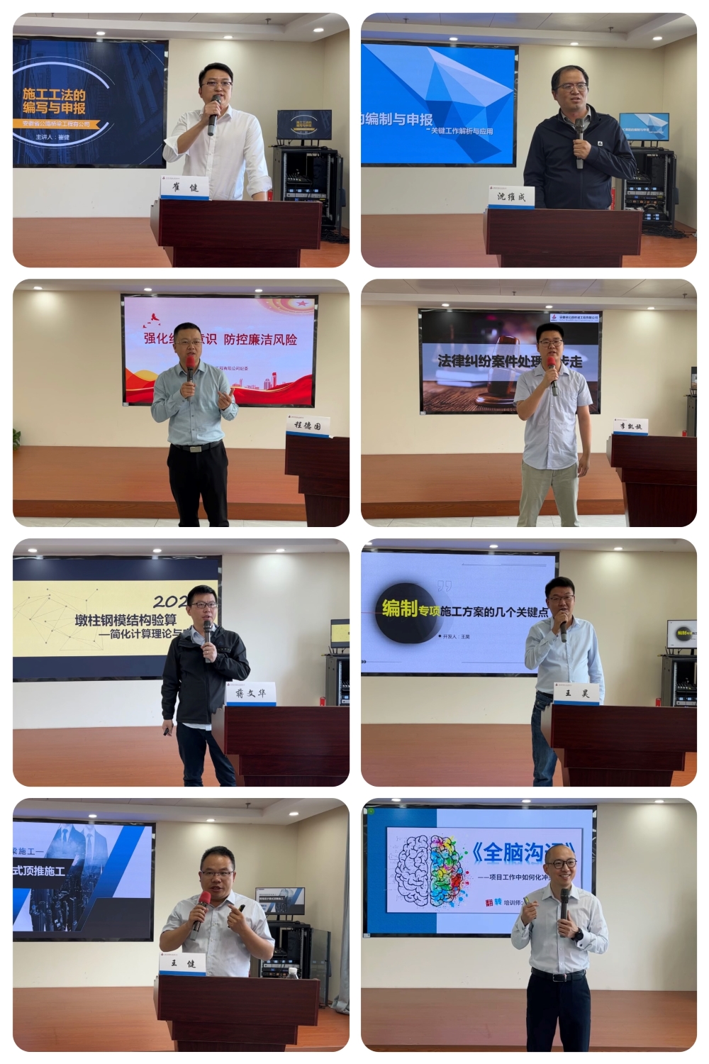 本次項(xiàng)目技術(shù)負(fù)責(zé)人培訓(xùn),以“基于崗位勝任能力要求實(shí)施針對(duì)性賦能培訓(xùn)”為核心,把能力提升和學(xué)習(xí)活動(dòng)結(jié)合起來(lái),在施工工法的編寫(xiě)與申報(bào)、QC成果課題編制及申報(bào)、專(zhuān)項(xiàng)施工方案編制、墩柱鋼模結(jié)構(gòu)驗(yàn)算、跨既有道路橋梁施工、紀(jì)檢專(zhuān)題培訓(xùn)、法務(wù)專(zhuān)題培訓(xùn)以及通用管理等方面設(shè)置內(nèi)容,并進(jìn)行動(dòng)態(tài)管理和效果測(cè)試。