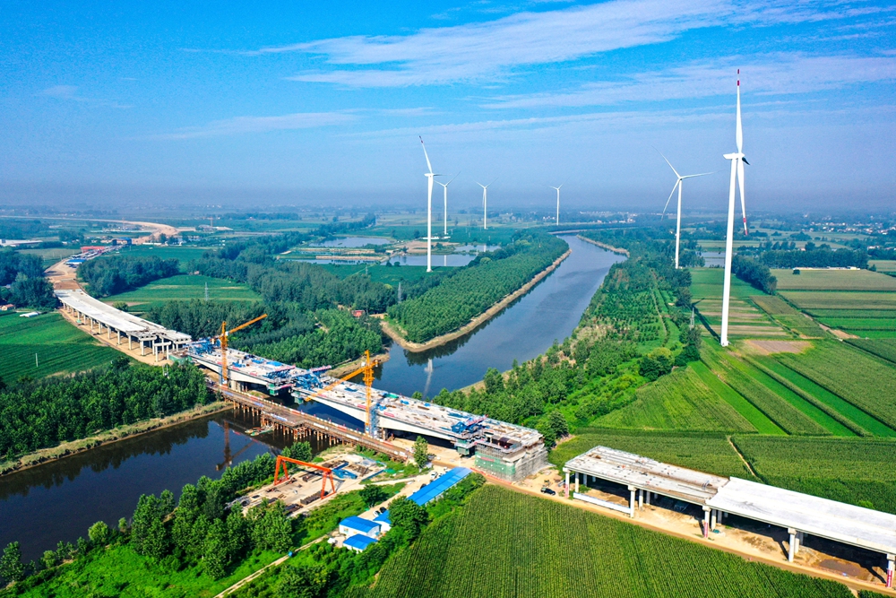【名媒聚焦】淮北日報(bào):徐淮阜高速淮北段沱河特大橋施工正酣