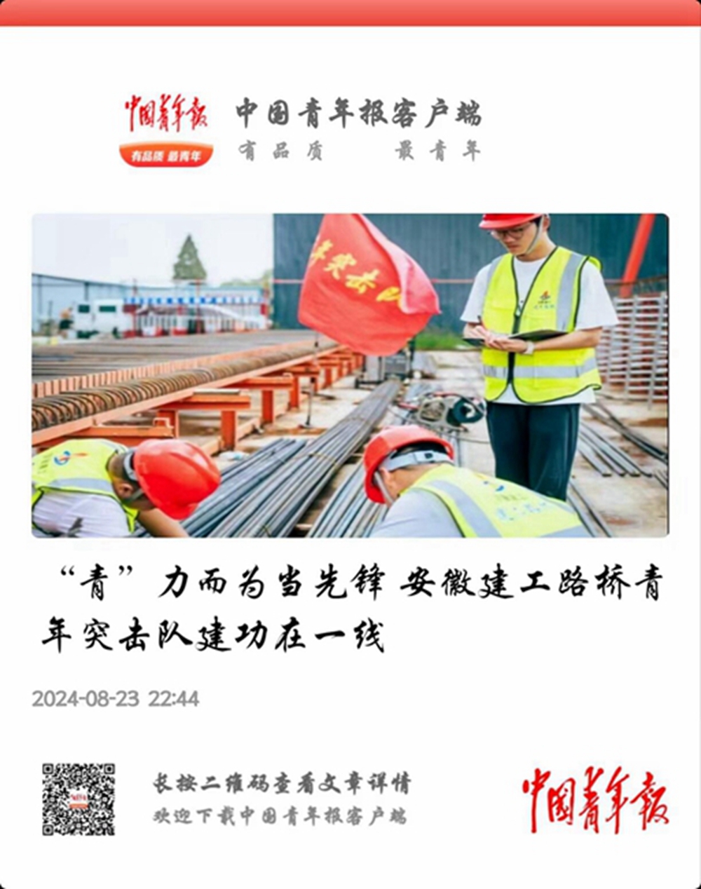【名媒聚焦】中國(guó)青年報(bào):“青”力而為當(dāng)先鋒 安徽建工路橋青年突擊隊(duì)建功在一線(xiàn)