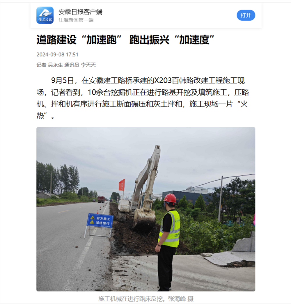 【名媒聚焦】安徽日?qǐng)?bào)客戶端:X203百韓路改建工程——道路建設(shè)“加速跑” 跑出振興“加速度”