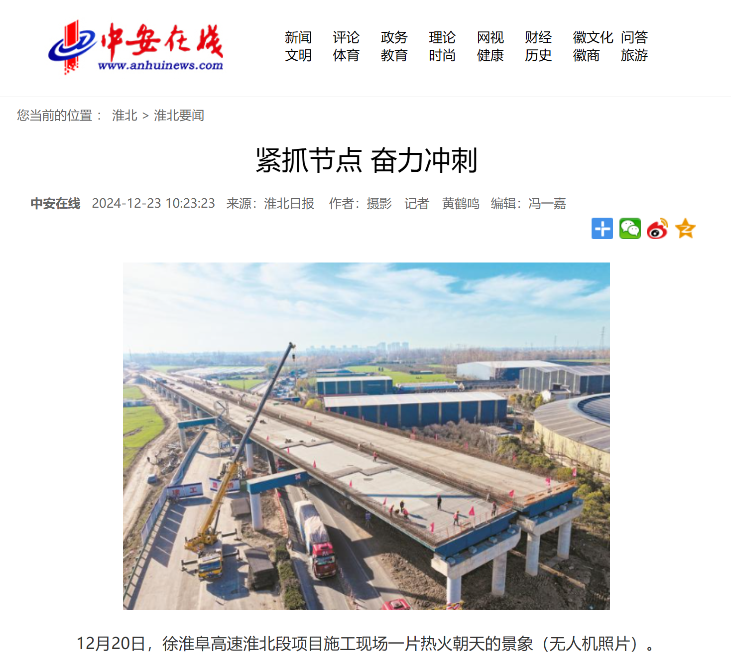 【名媒聚焦】中安在線、淮北日報:徐淮阜高速淮北段項目緊抓節(jié)點 奮力沖刺