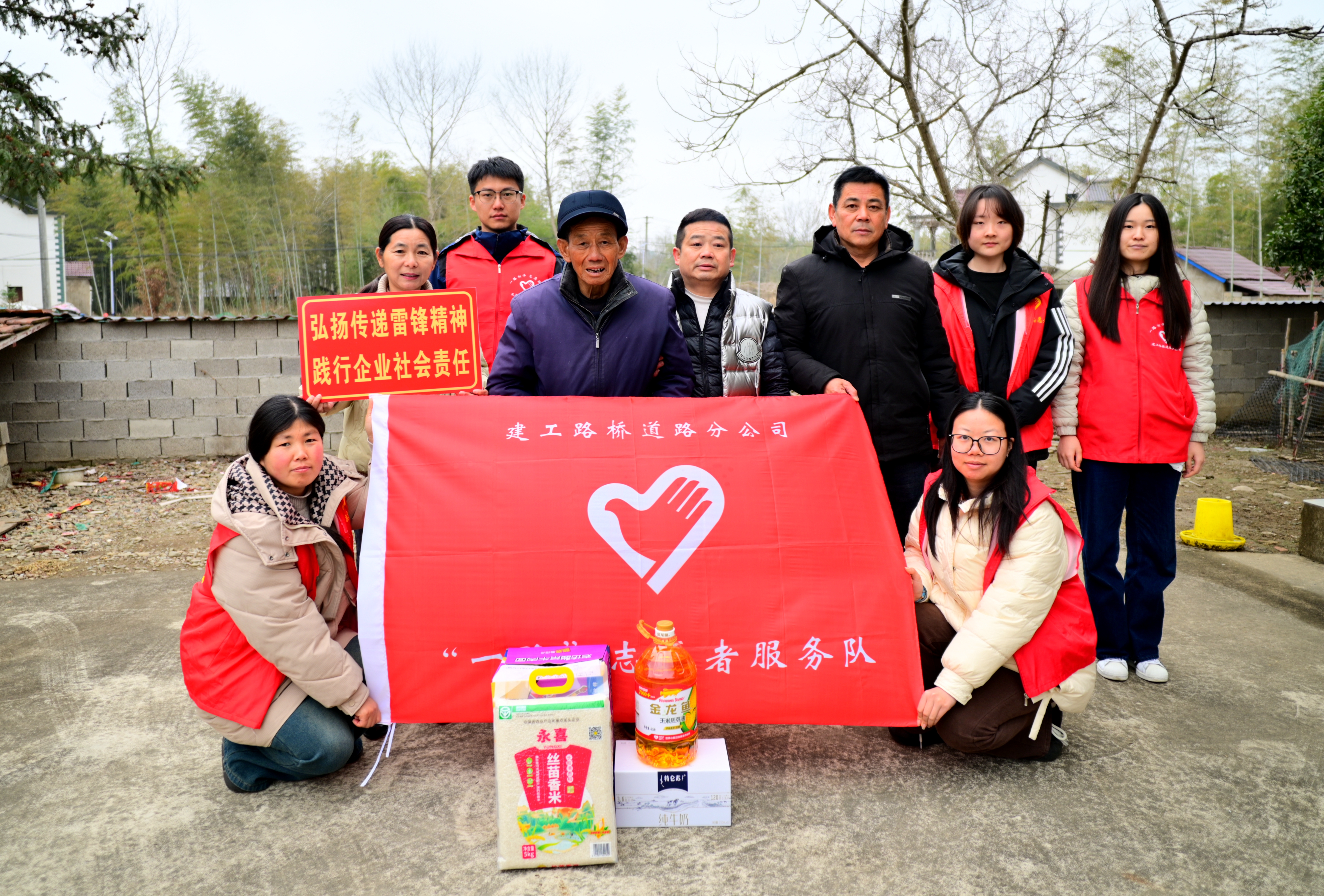 G329改建工程項(xiàng)目職工到宣州區(qū)水東鎮(zhèn)養(yǎng)老服務(wù)中心開(kāi)展雷鋒日志愿慰問(wèn)活動(dòng),為老人們送去營(yíng)養(yǎng)品、大米和食用油。