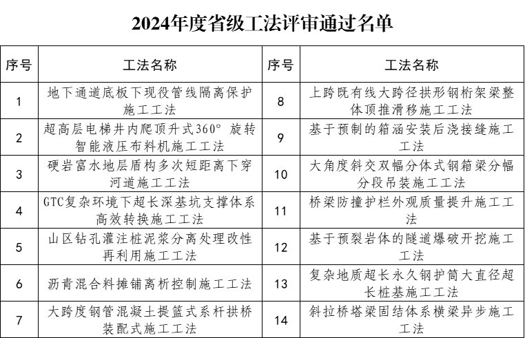 卓越創(chuàng)新 | 公司14項(xiàng)施工工法獲評省級工法