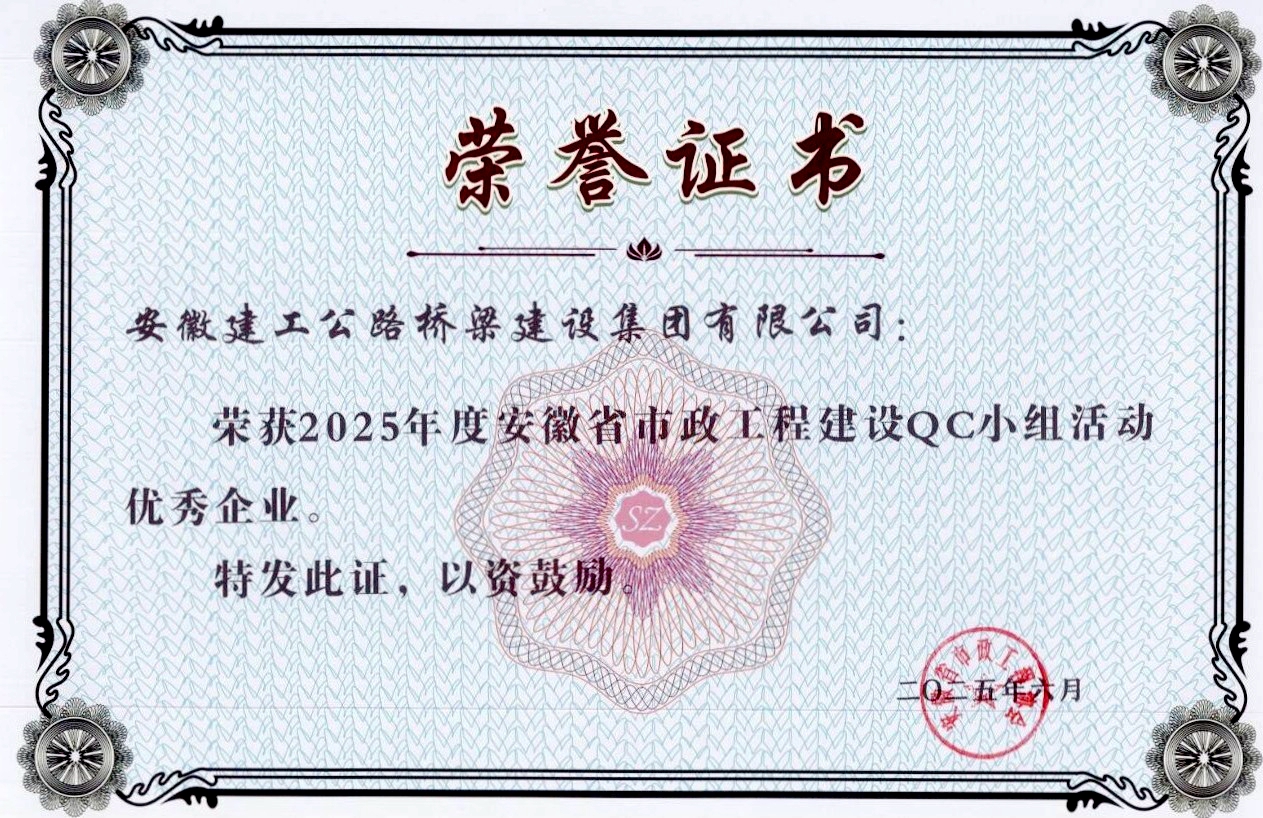 卓越創(chuàng)新 | 公司榮獲“2025年度安徽省市政工程建設(shè)QC小組活動優(yōu)秀企業(yè)”稱號