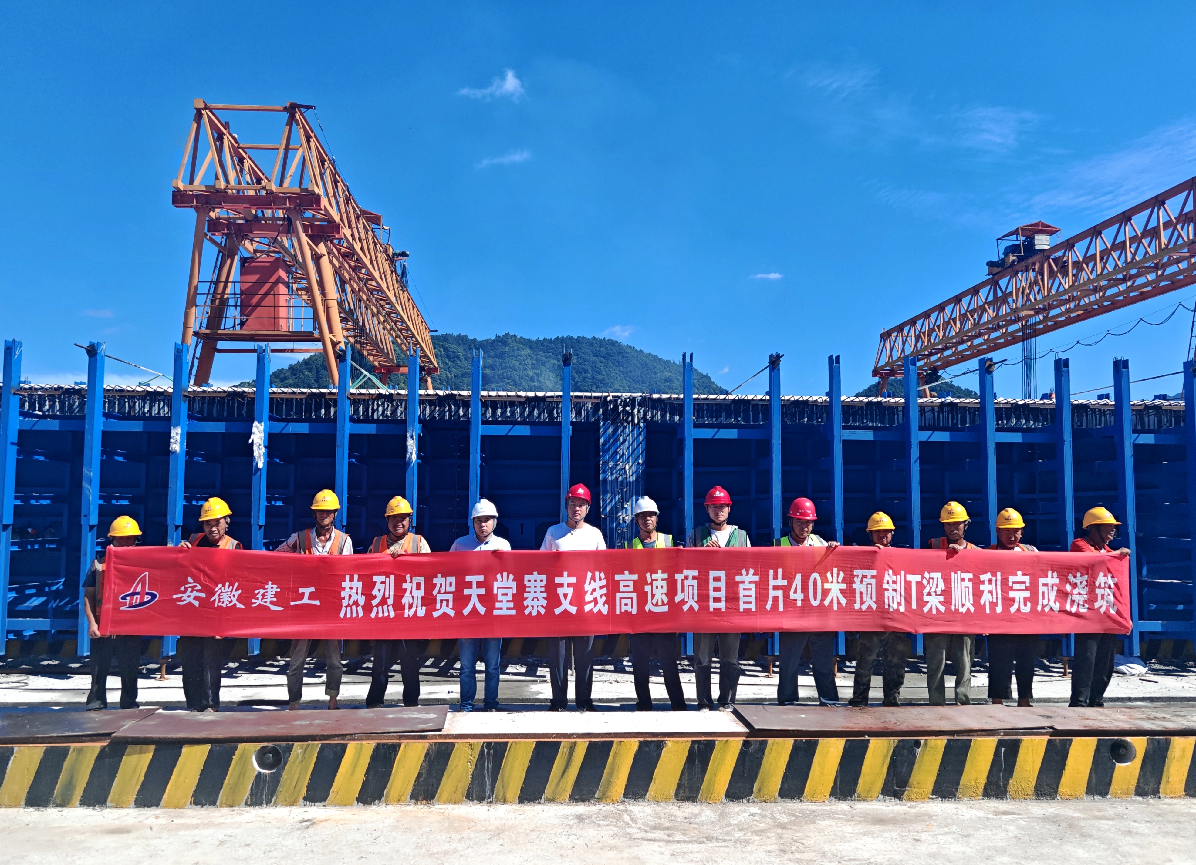 【路橋“競(jìng)”行時(shí)】天堂寨支線高速項(xiàng)目首片預(yù)制T梁成功澆筑