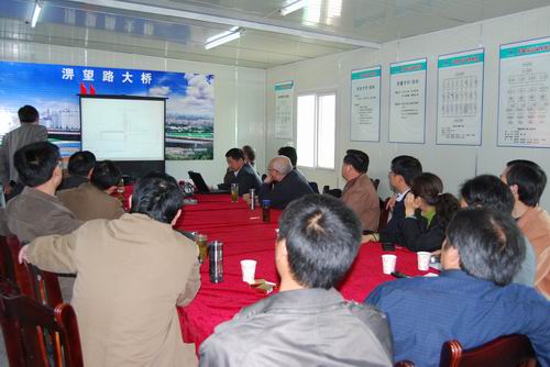 下午,觀摩團(tuán)一行又驅(qū)車來到了金桃橋項目。參觀了現(xiàn)場后,在金寨縣賓館會議室觀摩團(tuán)一行聽取了項目經(jīng)理劉曉晗的匯報。隨后各單位技術(shù)負(fù)責(zé)人就項目的箱拱吊裝施工等關(guān)鍵技術(shù)作了討論和交流。鄭總對該橋目前進(jìn)展情況表示滿意,并做了總結(jié)講話。同時對項目部積極探索和鉆研技術(shù)難點的精神表示贊賞。并對公司的質(zhì)量技術(shù)管理工作提出要求,要求格式進(jìn)一步結(jié)合深入學(xué)習(xí)實踐科學(xué)發(fā)展觀,繼續(xù)開展技術(shù)的開發(fā)挖掘,進(jìn)行技術(shù)的集成創(chuàng)新,研究、提煉項目工法和專利,為集團(tuán)公司技術(shù)創(chuàng)新多做工作,以增強集團(tuán)公司的核心競爭力。