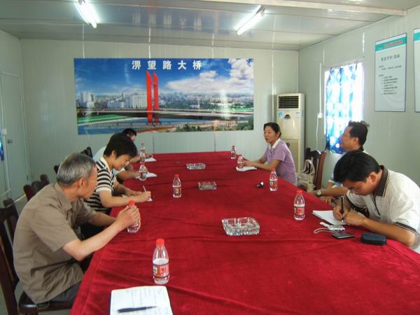 在項目部會議室,李主席等領(lǐng)導(dǎo)仔細聽取項目經(jīng)理江仲明的介紹,不時關(guān)切地詢問工程相關(guān)情況。工會主席趙其榮向集團工會李主席等一行在高溫天氣下來公司淠望路大橋項目部慰問表示感謝。