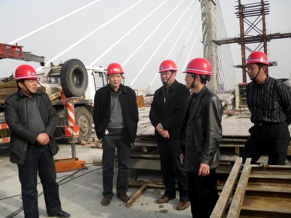 317下午,安徽建工集團(tuán)公司副總經(jīng)理戴良軍在公司副總經(jīng)理、總工程師彭申凱、總經(jīng)理助理丁世國的陪同下來到淠望路大橋項目視察指導(dǎo)工作。