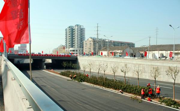 新蚌埠路與北二環(huán)路立交橋采取北二環(huán)路下穿新蚌埠路的路塹式結(jié)構(gòu),通過立交銜接,兩條路實(shí)現(xiàn)交通分流,成為北部城區(qū)的兩條快速通道。該項(xiàng)目自2008年9月開工以來,積極響應(yīng)公司號召,發(fā)揚(yáng)“團(tuán)結(jié)拼搏、優(yōu)質(zhì)高效”的精神,趕進(jìn)度、保質(zhì)量、重安全,全體員工們團(tuán)結(jié)一致,艱苦奮斗,于2009年3月順利完成施工任務(wù),比原計(jì)劃工期提前了兩個(gè)多月,深受業(yè)主和社會(huì)各界的好評。該項(xiàng)目在施工過程中獲市重點(diǎn)局通報(bào)嘉獎(jiǎng),榮獲了建工集團(tuán)優(yōu)秀項(xiàng)目部、安全文明示范工地等稱號,項(xiàng)目經(jīng)理李建成被評為建工集團(tuán)優(yōu)秀項(xiàng)目經(jīng)理,工程組被評為建工集團(tuán)先進(jìn)班組。