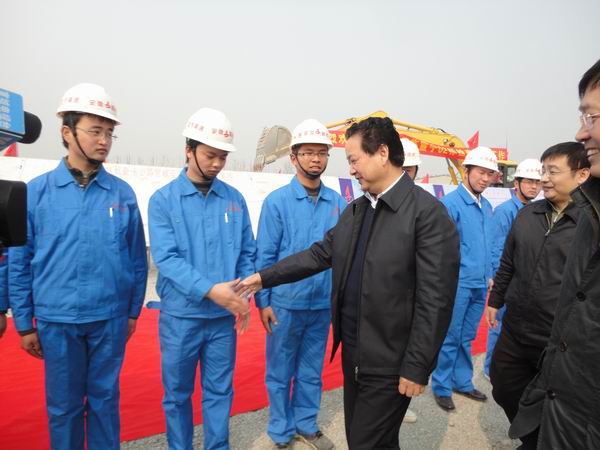 3日下午,黃省長蒞臨寧績高速07標視察。在該項目現(xiàn)場,黃省長與汪總進行了親切地交談。黃省長高度評價了公司近年來的發(fā)展歷程,高興地說,“以前安徽路橋還很困難,發(fā)不出工資;今天看到了安徽路橋足跡遍布十二省市,規(guī)模大,效益好,我由衷地感到欣慰?!迸R上車前,黃省長緊握汪總的手語重心長地鼓勵安徽路橋做大做強,為推動安徽公路事業(yè)發(fā)展承擔(dān)更多的責(zé)任。