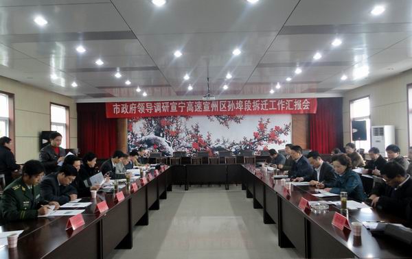 進(jìn)行現(xiàn)場了解之后,虞市長立即在孫埠鎮(zhèn)政府主持召開了相關(guān)工作會(huì)議。會(huì)議過程中,虞市長認(rèn)真聽取了孫埠鎮(zhèn)黨委史書記、鎮(zhèn)政府胡鎮(zhèn)長的工作匯報(bào)和我部項(xiàng)目經(jīng)理張慶書所作的有關(guān)施工進(jìn)展情況以及當(dāng)前面臨的重大客觀困難的情況介紹。隨后立即組織了討論解決問題的對策。虞市長指出:作為政府方面,宣城市交通局、宣州區(qū)政府以及孫埠鎮(zhèn)政府必須從宣城市大局發(fā)展的角度,提高認(rèn)識、明確責(zé)任、開通思路、多想辦法、強(qiáng)化措施,保證在月底前完成宣寧高速02標(biāo)段紅線內(nèi)房屋拆遷工作,為安徽省公路橋梁工程公司提供一個(gè)暢通、穩(wěn)定的施工環(huán)境!