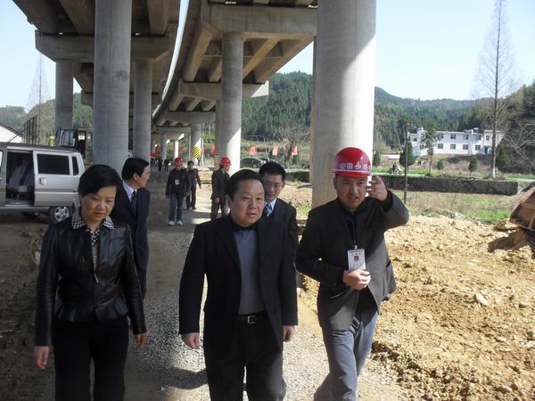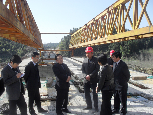 2012324下午,黃山市委書記、市人大常委會(huì)主任王福宏蒞臨黃祁08標(biāo)視察金字牌跨皖贛鐵路橋建設(shè)情況。祁門縣委書記張敏、縣長(zhǎng)楊龍、縣政協(xié)主席葉為舟等陪同視察。