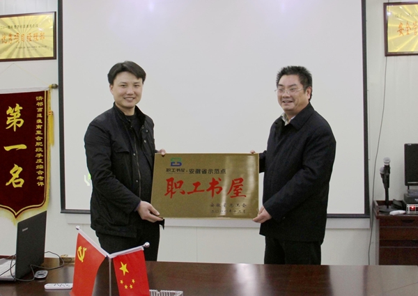 3月12日下午,安徽省總工會(huì)宣教部部長(zhǎng)曾傳發(fā)、副部長(zhǎng)陳重光蒞臨公司濟(jì)祁高速淮合段淮河特大橋路基01標(biāo)項(xiàng)目部為“職工書(shū)屋”省級(jí)示范點(diǎn)授牌并贈(zèng)書(shū)。集團(tuán)工會(huì)副主席吳曉伍、女工委主任胡愛(ài)紅、公司工會(huì)主席胡運(yùn)春陪同。
