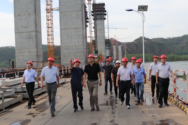 5月30日,河南省交通運輸廳黨組成員、副廳長徐強一行在濟源市副市長李拴根、市交通運輸局局長安東利、濟洛西高速公路建設(shè)有限公司董事長楊新民等陪同下,蒞臨公司承建的濟洛西高速黃河特大橋項目調(diào)研指導(dǎo)工作。