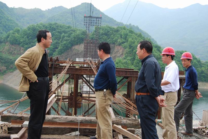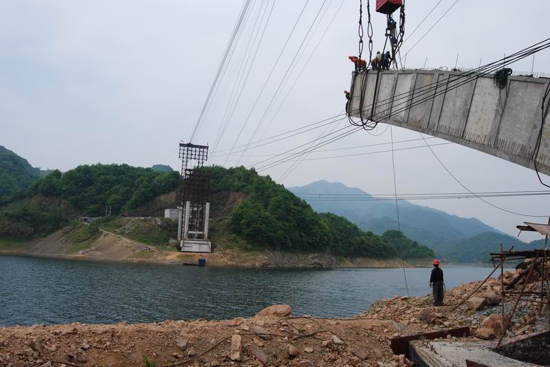 2009年4月30日上午10:30,寧靜的大別山革命老區(qū)金寨縣梅山水庫上空傳來了清脆的鞭炮聲,絢爛的禮花把青山綠水映襯得更加多姿。備受社會關注的金寨縣金桃大橋主橋第二孔,即桃?guī)X跨第一片重達75T的箱拱梁被緩緩吊起,在眾目凝視下穩(wěn)穩(wěn)就位,為“五.一”國際勞動節(jié)獻上了一份厚禮。這預示著金桃大橋又取得了一個實質性的進展和階段性的勝利。金寨縣交通局張傳旭局長、王學軍副局長、總監(jiān)賈淳忠等在公司總經(jīng)濟師楊文柱的陪同下,現(xiàn)場觀看了整個吊裝過程。下午,金寨縣人大副主任石本德、縣委常委、常務副縣長趙權分別到場表示祝賀和慰問。