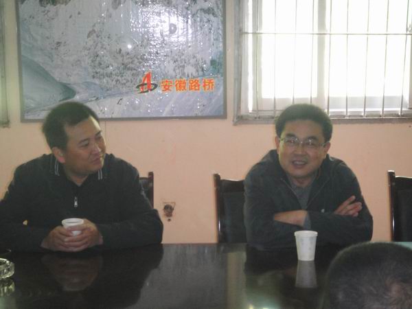 在項目部會議室,陳經(jīng)理首先向交通廳領(lǐng)導(dǎo)匯報援建工程施工進展情況以及漳黃路02標(biāo)全體建設(shè)者克服各種不利因素,提升大干干勁等情況。交通廳及公路局領(lǐng)導(dǎo)對安徽路橋在四川援建工程中的表現(xiàn)表示滿意,并鼓勵項目部全體人員要再接再厲,樹起安徽筑路人的光輝風(fēng)采。