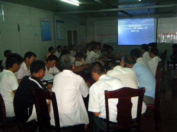 810晚,泗許項(xiàng)目01標(biāo)召開大干八九動員會議,會議由項(xiàng)目總工鄧光文主持,項(xiàng)目經(jīng)理杜海峰及項(xiàng)目部各部門負(fù)責(zé)人,分段工程師、技術(shù)人員、各施工隊(duì)負(fù)責(zé)人參加了會議。