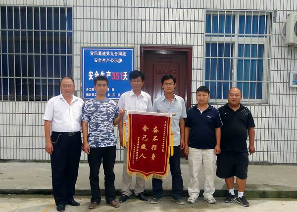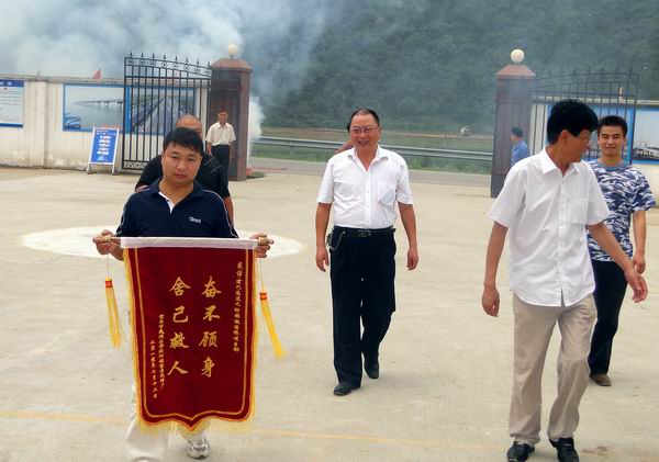 為感謝救人宜昌汽修廠送錦旗到宜巴09標 發(fā)布時間:2010年07月20日 來源:宜巴09標 發(fā)布人: 作者:晏永超 瀏覽:4326次 7月15日,公司宜巴09標項目部禮炮聲隆隆,喜氣洋洋。宜昌市夷陵區(qū)霧渡河鎮(zhèn)富貴汽修廠為感謝公司員工奮不顧身搶救落水人員特送來錦旗,錦旗上寫著“奮不顧身,舍己救人”。 6月26日,福貴汽修廠員工駕車經過我項目二工區(qū)馬家河二號橋附近時,突然沖入河中,我部員工王雪松、韋祥峰等見此情景,奮不顧身跳河救人,同時項目部積極調配車輛設備,奮力施救,經過一個小時的救援,駕駛員獲救。夷陵區(qū)電視臺對此進行報道,引起了強烈的社會反響。 王雪松、韋祥峰等人在接受夷陵區(qū)光電中心記者采訪時謙虛的說,面對危險,任何人都會主動施救,我們只是做了安徽路橋人應該做的事情。一個人就是一面旗子,王雪松、韋祥峰等就是安徽路橋的一面旗子,飄揚在宜巴高速路上。
