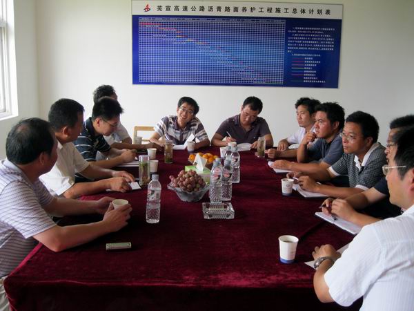 結(jié)束了對前后場的現(xiàn)場視察后,曹部長一行在項目部會議室召開了工作座談會議。會上交投集團養(yǎng)護部曹部長、界阜蚌改建辦張主任、蕪宣管理處養(yǎng)護部張部長、駐地辦劉組長作為代表分別就目前施工中質(zhì)量控制的要點以及施工工序中需注意的幾個方面做了發(fā)言,并就此進行了深入的交流與探討。