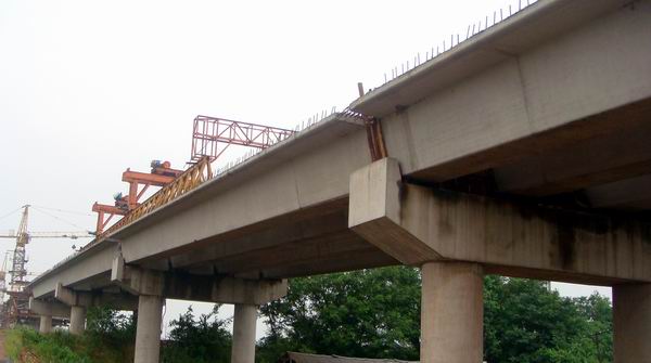 江南的7月是個(gè)多雨的季節(jié),自進(jìn)入7月以來(lái),青弋江項(xiàng)目遇上連日暴雨,長(zhǎng)江水位猛漲,青弋江水位也隨長(zhǎng)江水位增高和上游陳村水庫(kù)泄洪而增高,一度超過(guò)了98年同期水位,致使對(duì)岸紅星圩大堤被縣防指封堵,東岸施工平臺(tái)被淹,被迫停工半月之余。再加上受洪水、停電、停水等不利因素的影響,項(xiàng)目生產(chǎn)出現(xiàn)困難,但項(xiàng)目部及時(shí)調(diào)整施工方案和對(duì)策,不等不靠,采取靈活方案,積極進(jìn)行施工生產(chǎn):主橋不能干就干引橋,白天不能干就晚上干,停電就自己發(fā)電,沒(méi)有水就挑水或買(mǎi)水……努力克服重重困難,保工期、保質(zhì)量。到月底即7月31日止,共完成32片30M箱梁的安裝,主橋已完成5#墩的7#塊、6#墩的5#塊的澆筑任務(wù),預(yù)計(jì)8月底能完成主橋全跨的合攏任務(wù)。9月份全橋?qū)⑦M(jìn)入上部橋面系的施工,全橋預(yù)計(jì)在10月底全部完工。
