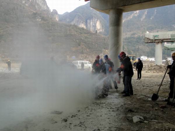 為加強冬季防火安全工作,1月16日,宜巴09標在橋梁一工區(qū)組織進行防火演練,以檢驗并增強我部發(fā)現(xiàn)安全隱患、及時處理的應(yīng)急能力。本次演練由項目部分管安全工作的黨支部書記邵建新?lián)慰傊笓],安全部部長萬和國擔任現(xiàn)場指揮,項目總工、各工區(qū)區(qū)長和現(xiàn)場施工班組負責人到場參與演練。